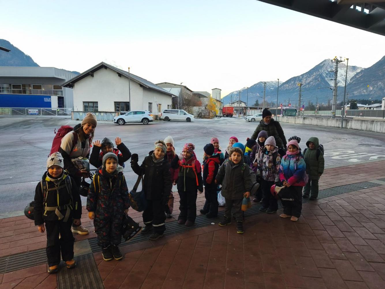 Zwei Tage hintereinander fuhren die 1. Klassen aufgeteilt mit den Bussen zum Eislaufplatz nach Alpbach.