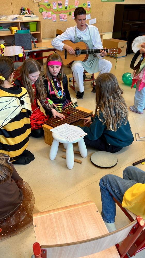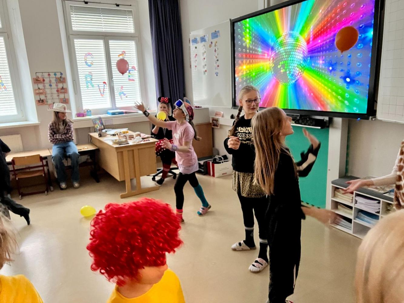 Ein buntes Bild bot sich danach beim Höhepunkt des Faschingsdienstags: der Polonaise durch das gesamte Schulhaus. Lehrer:innen und Kinder zogen gemeinsam in einer langen, fröhlichen Schlange durch die Gänge, Klassen und Stiegenhäuser – ein lustiges Spektakel, das wie jedes Jahr für viele lachende Gesichter sorgte.
