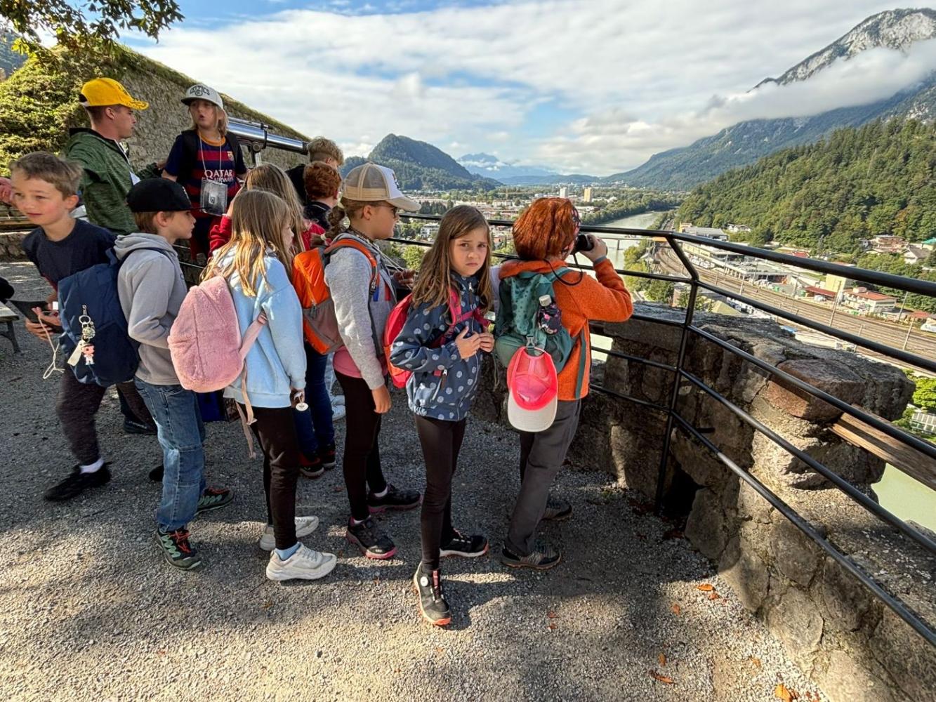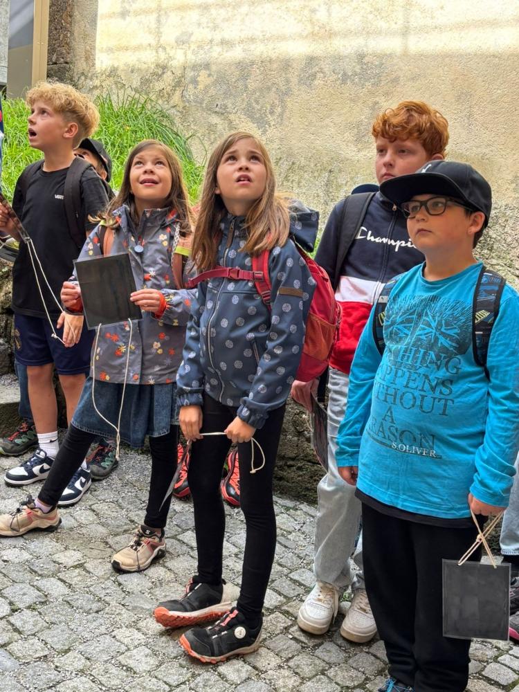 In Gruppen aufgeteilt erkundeten die Kinder mit ihrer Fremdenführerin die mittelalterliche Burganlage bis in ihre geheimsten Winkel. Über zahlreiche Stufen und schmale Felsengänge führte der Weg hinauf zum Kaiserturm, in dem sich früher das Gefängnis befand. Auf einem Vorplatz standen einige Kanonen von Kaiser Maximilian. Die riesigen Orgelpfeifen der berühmten Heldenorgel, der „Tiefe Brunnen“ und der wunderschöne Ausblick auf die Umgebung begeisterte alle. Es war ein lehrreicher und eindrucksvoller Ausflug.