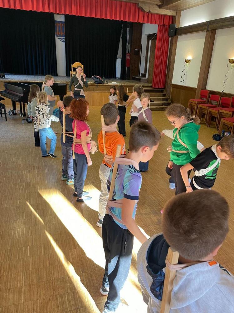 Die 4b begab sich am 12.11. im Rahmen eines doppelstündigen Kultur-Workshops auf den Spuren des österreichischen Wunderkindes Wolfgang Amadeus Mozart. Mit Choreographin Sarah Wallner wurden zunächst Bewegungsspiele zu Mozarts Musik gespielt. Im Anschluss studierten wir eine einfache Hip-Hop-Choreografie zu Falcos „Rock Me, Amadeus“ ein. Danach lernten die Kinder noch, wie man sich zu Mozarts Lebzeiten zu Musik bewegte und wir erarbeiteten einen klassischen Reihentanz. Damit wir die aufrechte Tanzhaltung von früher nachspüren konnten, kamen sogar Hilfsmittel zum Einsatz.